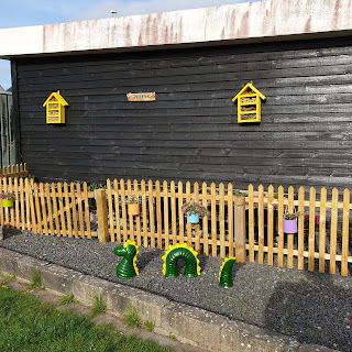 Vi startede med at lave regnbuer i karton til alle vinduerne.